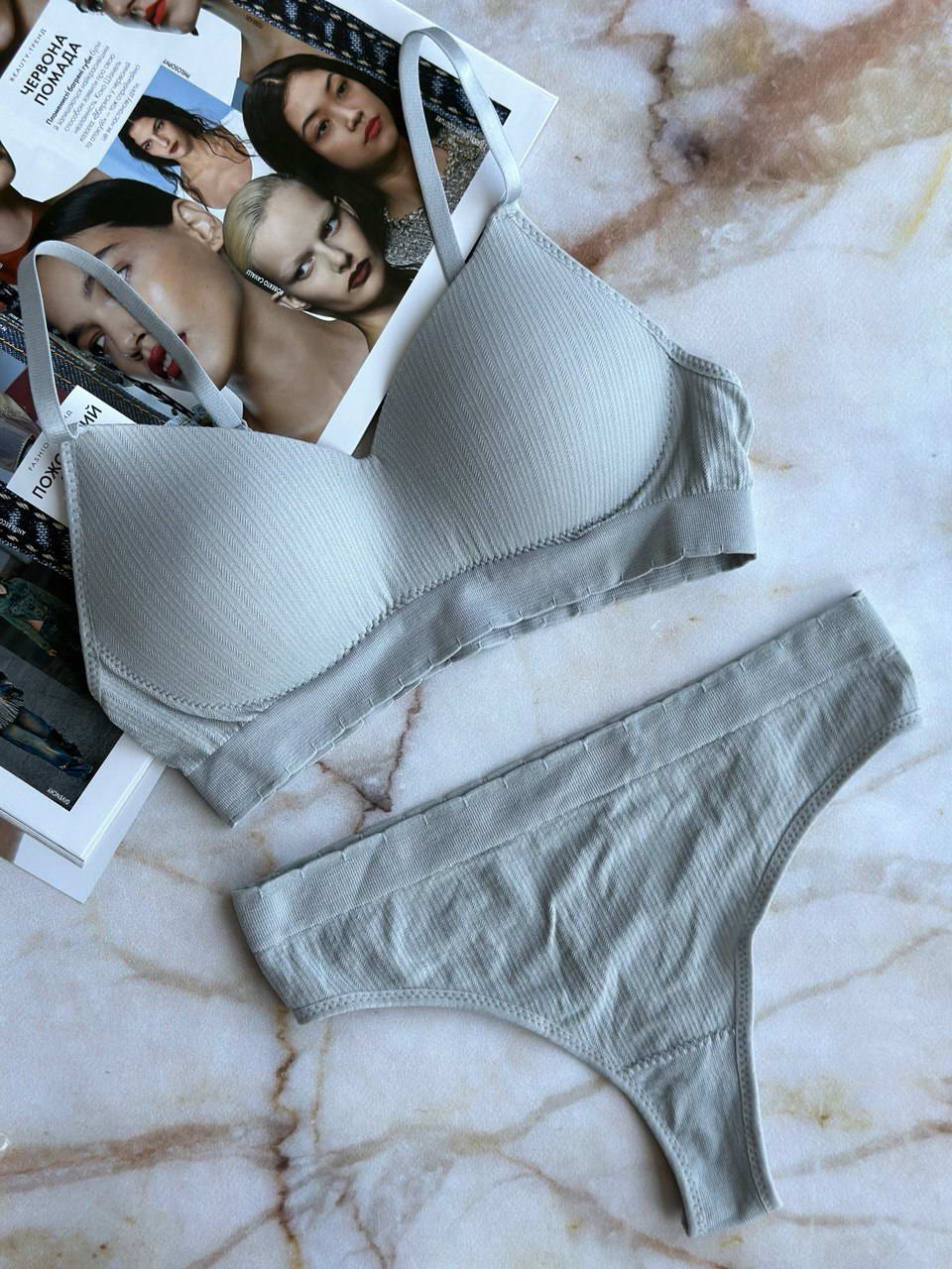 Топ із вшитим поролоном, бретель незнімна, регулюється. Бікіні в рубчик на високій посадці