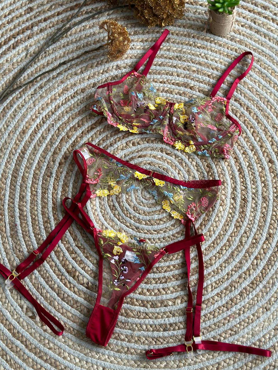 Розкішний інтимний комплект жінчої білизни з квітковою вишивкою