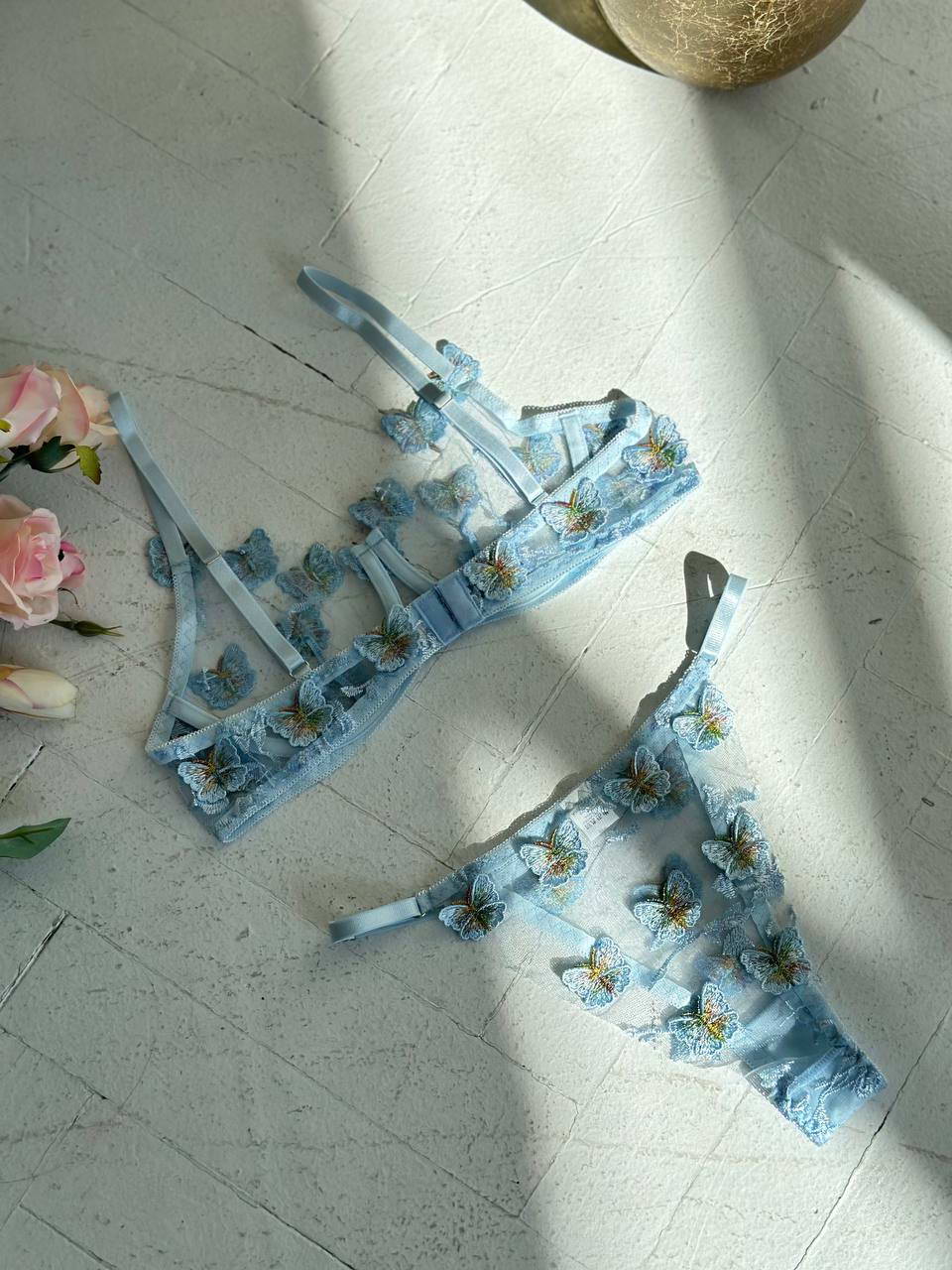 Ніжний комплект з мікросітки та вишивки