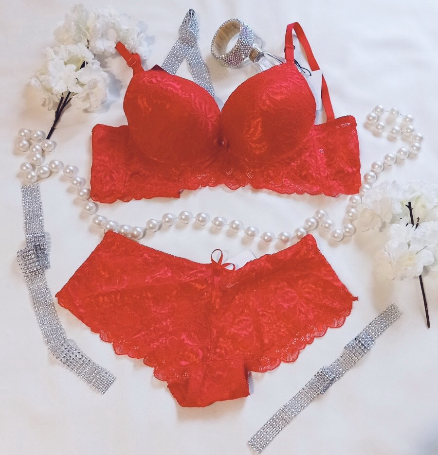Бюстгальтер з тонким поролоном, зі знімними бретелями, повністю ажурний. Трусики шортиками